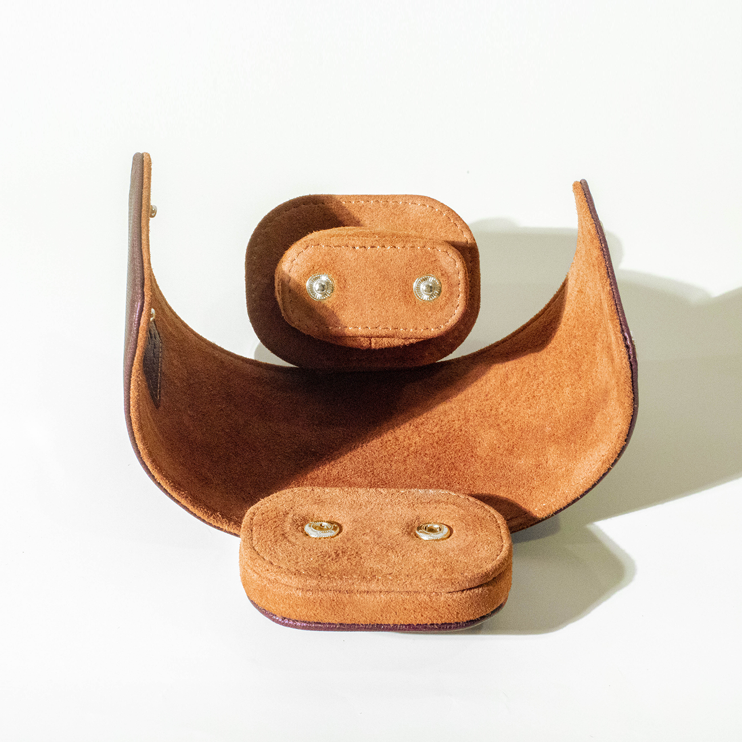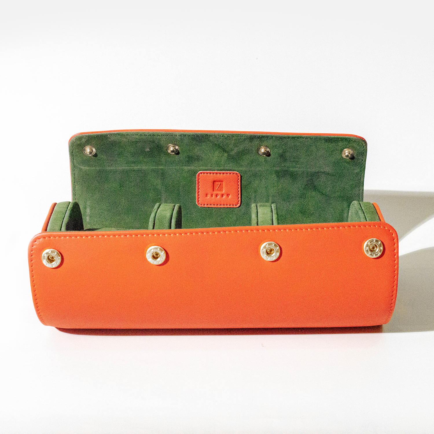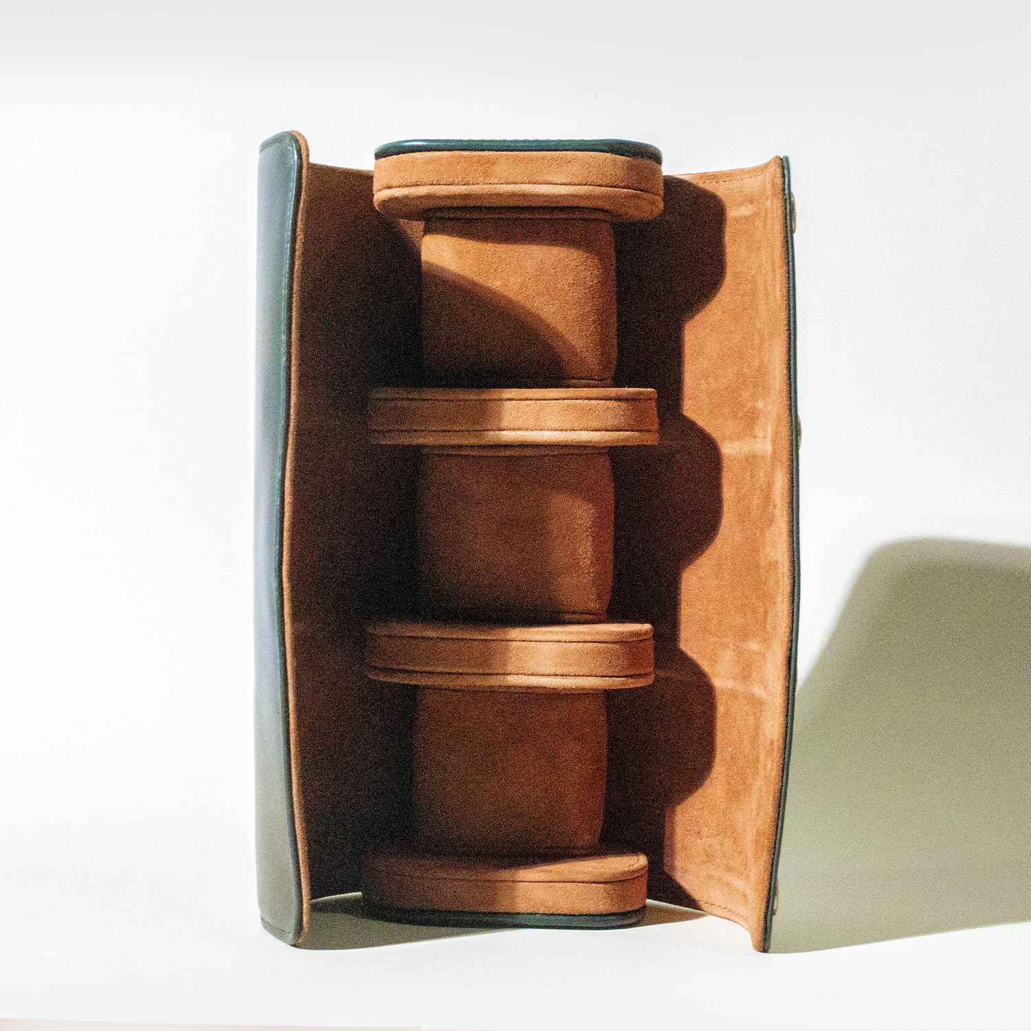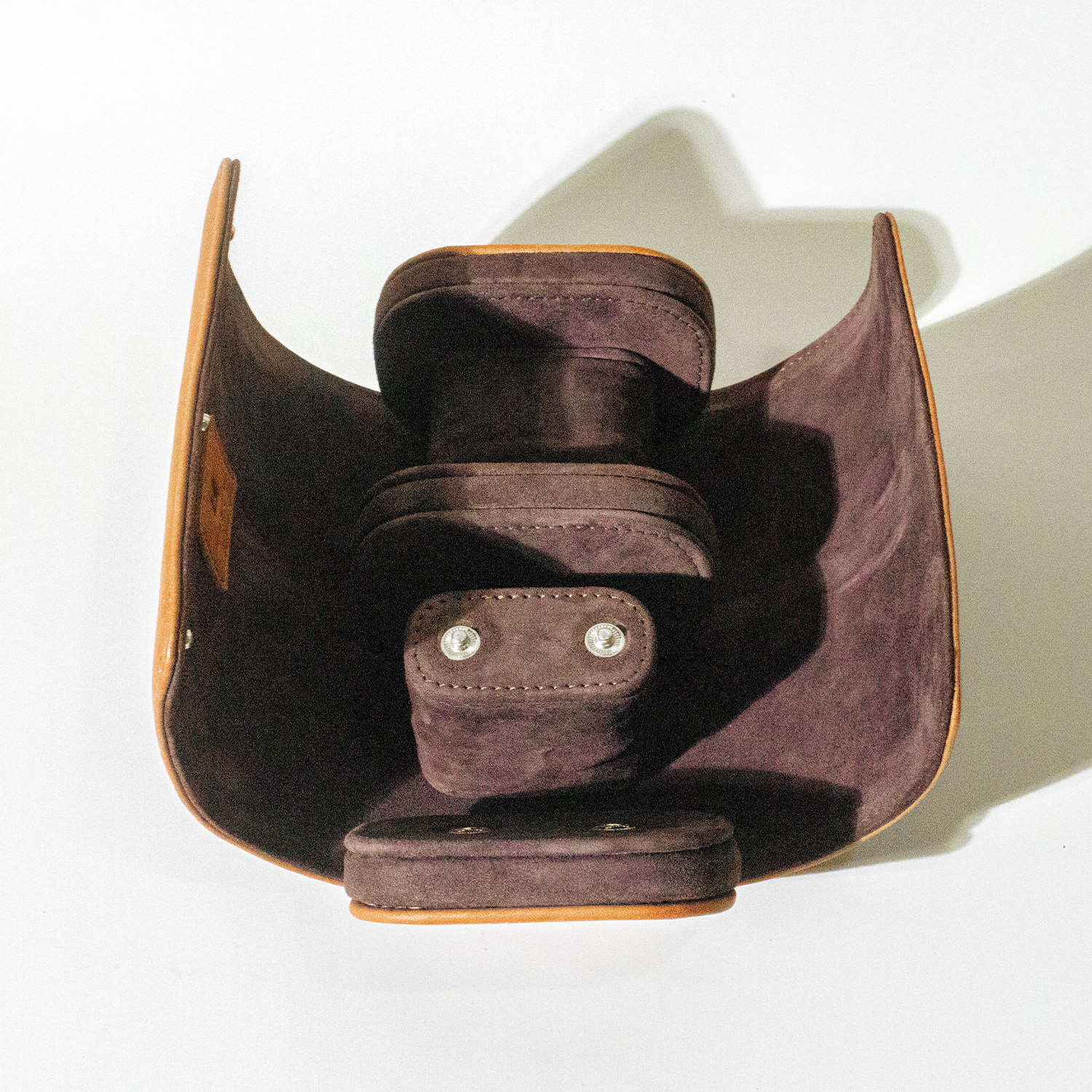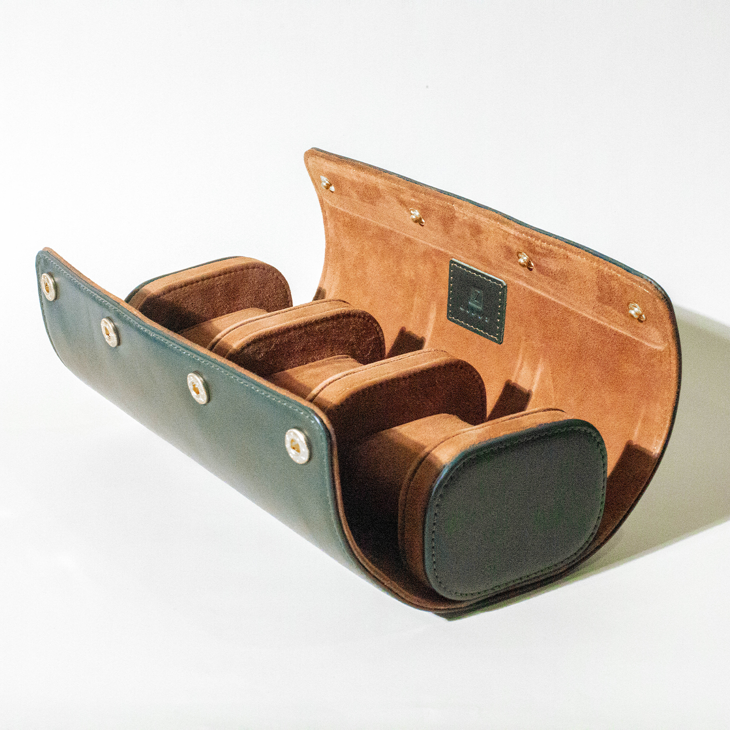 Our watch rolls are handmade by our skilled artisans in the workshop. They are handmade with our selected high quality full grain leather with a kid suede lining and pure brass button enclosures for added safety.