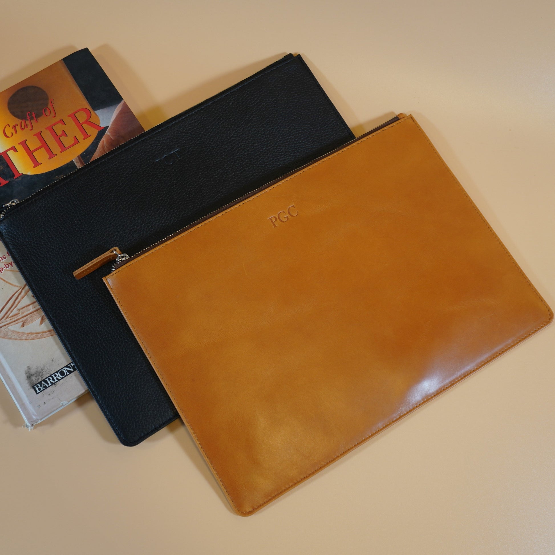 A minimalist leather folio with one main zippered compartments that is the perfect case for your tablet and important documents.